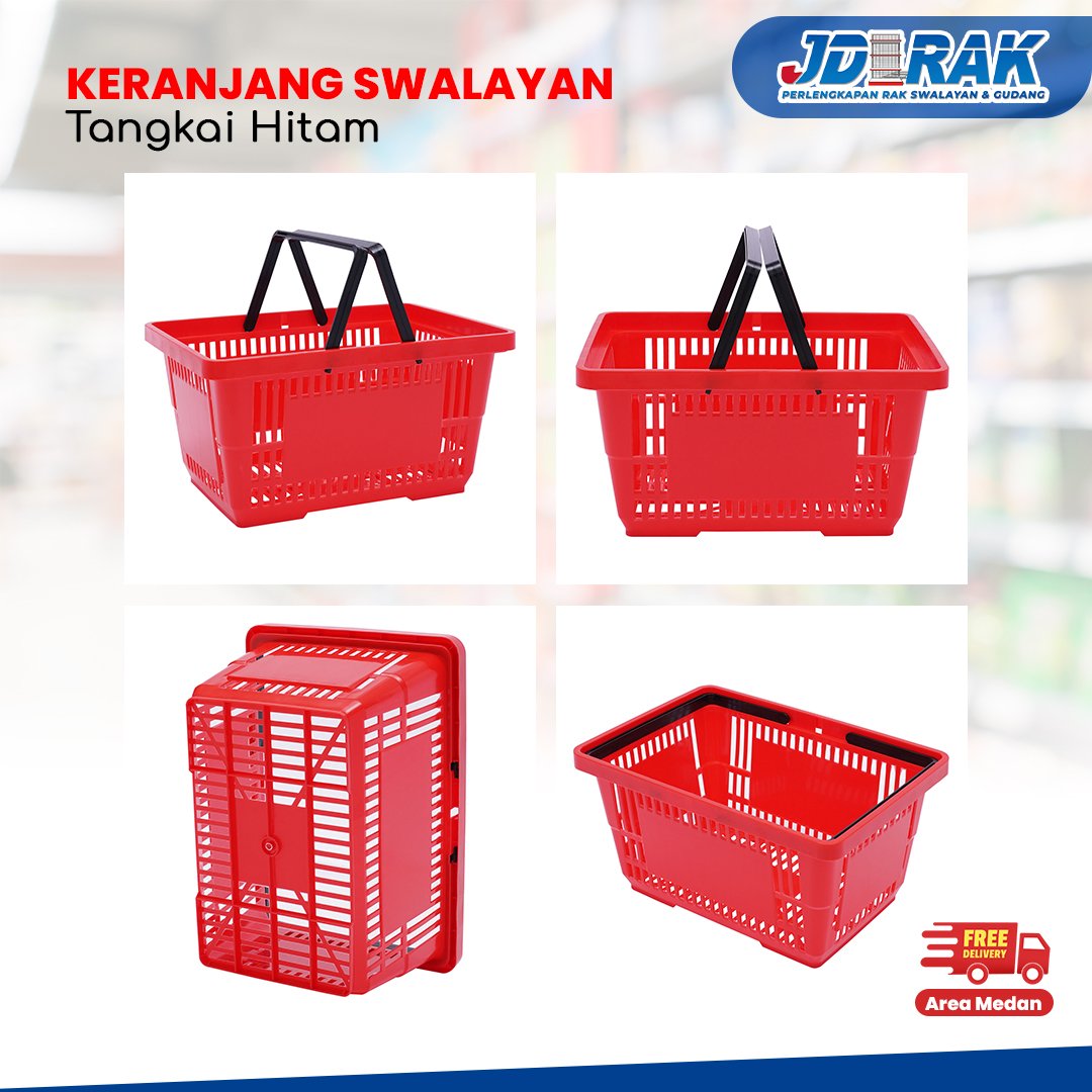 Keranjang Belanja Swalayan Tangkai Hitam - JD RAK SWALAYAN