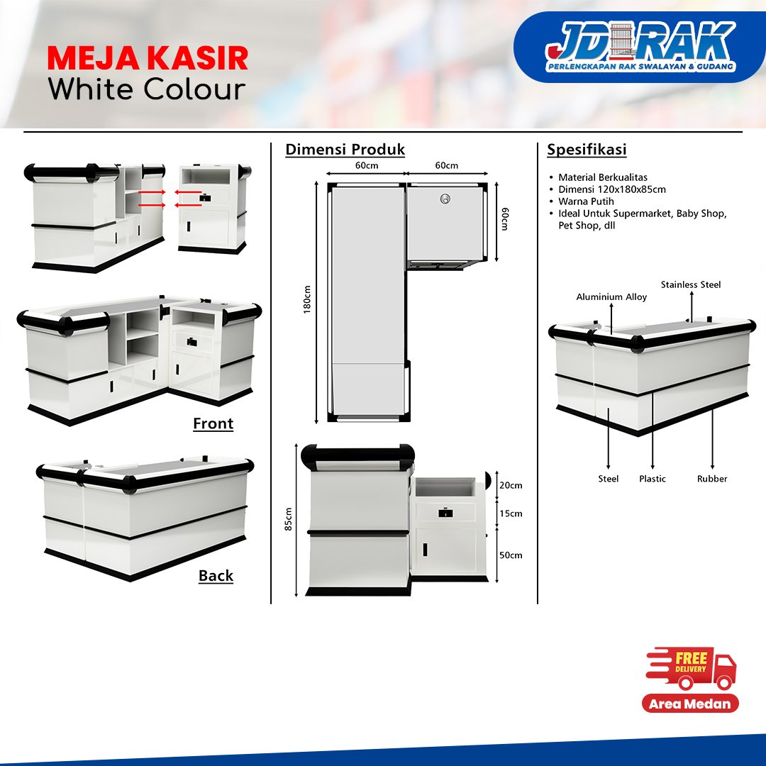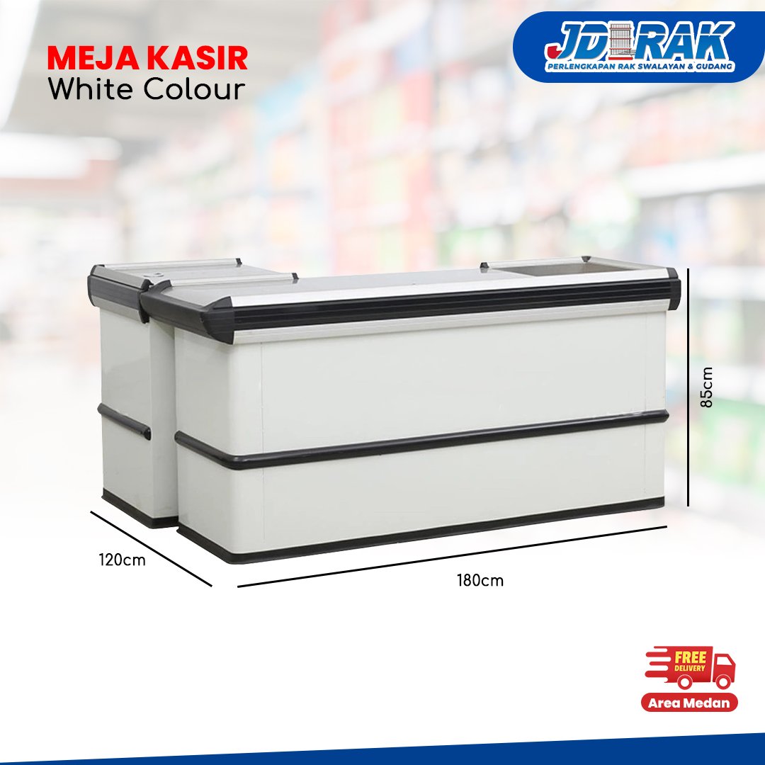 Meja Kasir Minimarket White Colour - JD RAK SWALAYAN